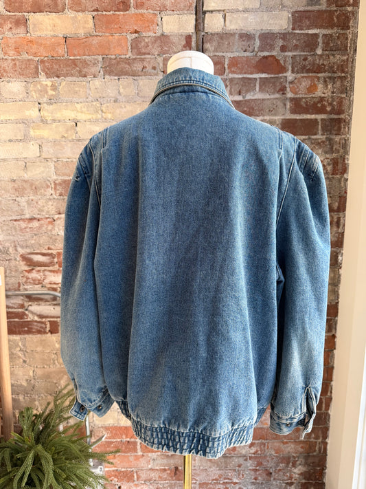 80s Bramble Lane denim bomber. Made in Hong Kong