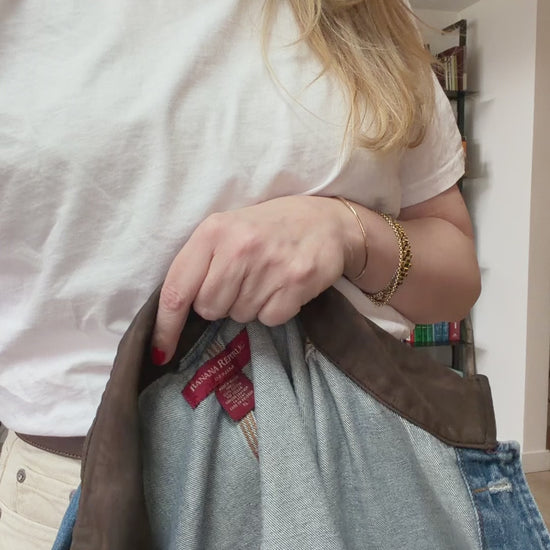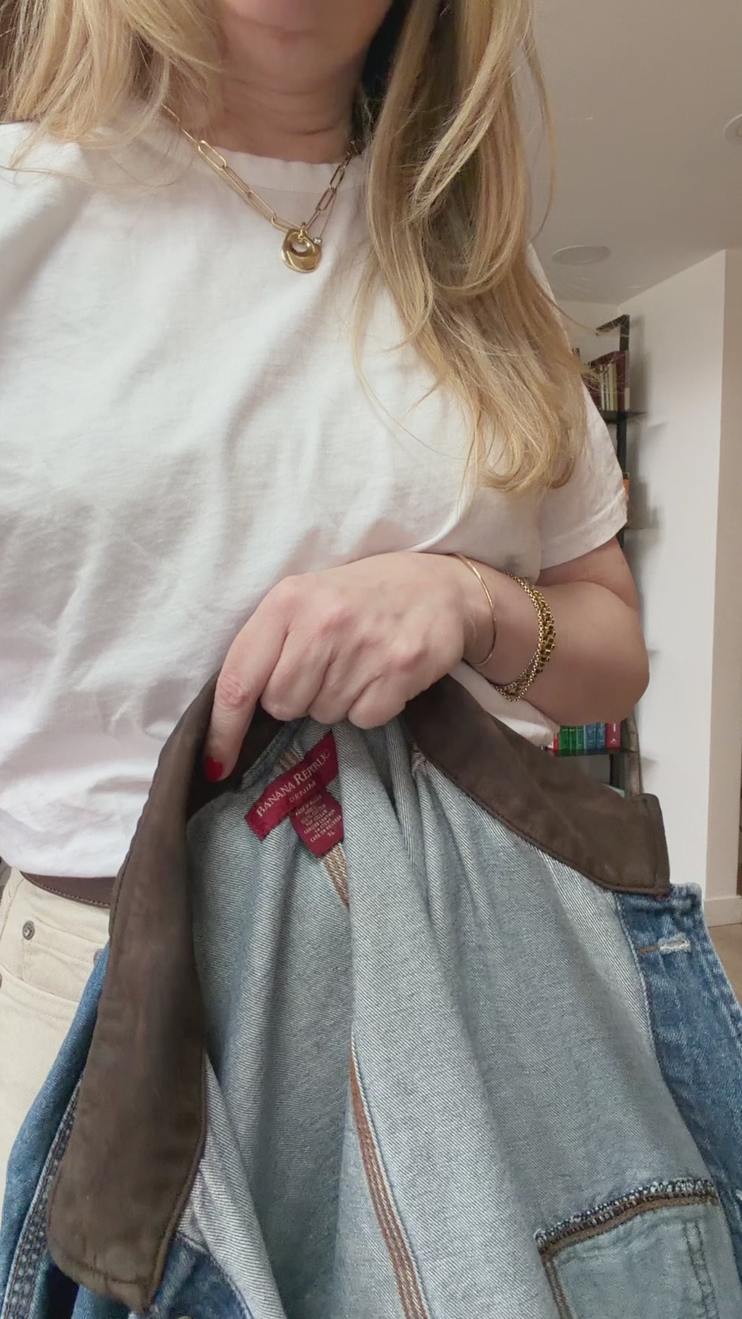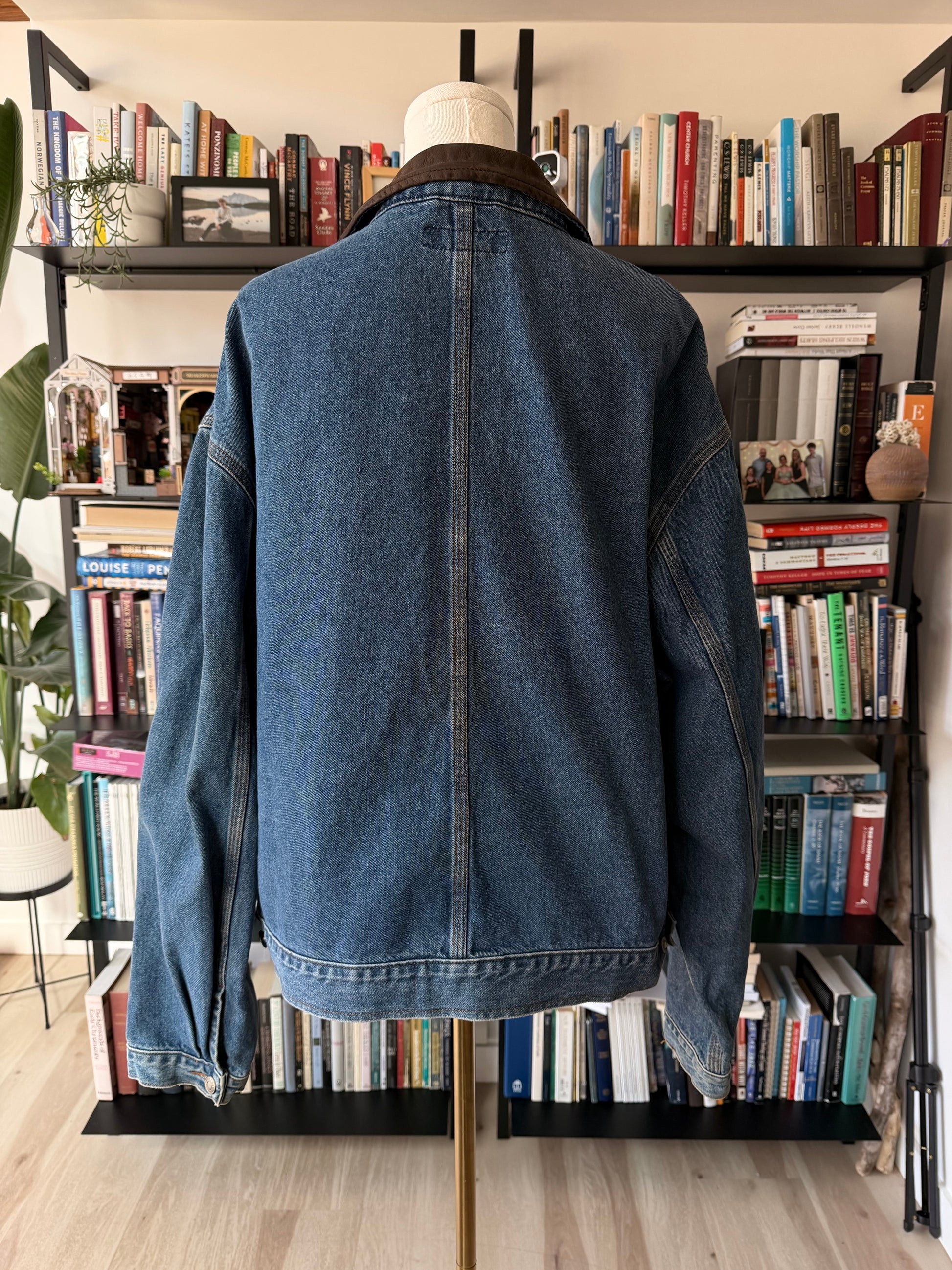 90s Banana Republic denim jacket with leather collar. Excellent condition