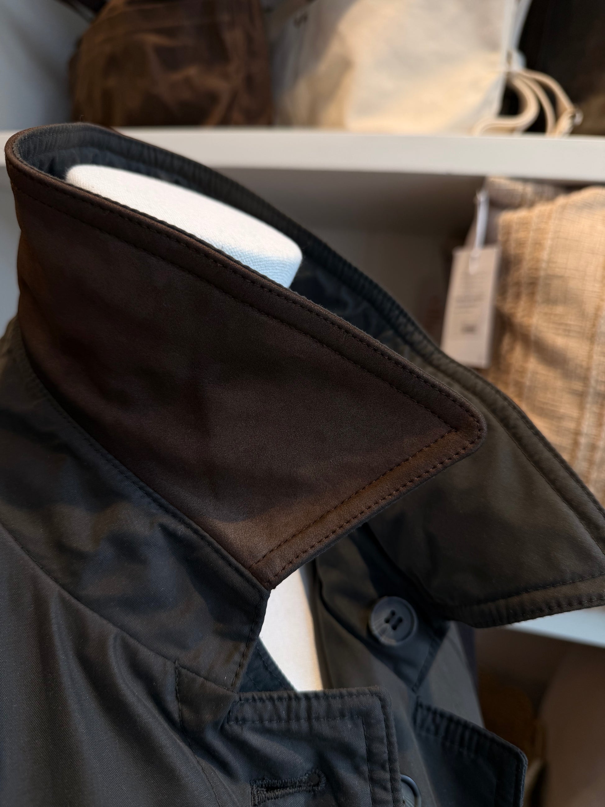 90s Chaps Ralph Lauren green trench with leather collar and removable wool lining