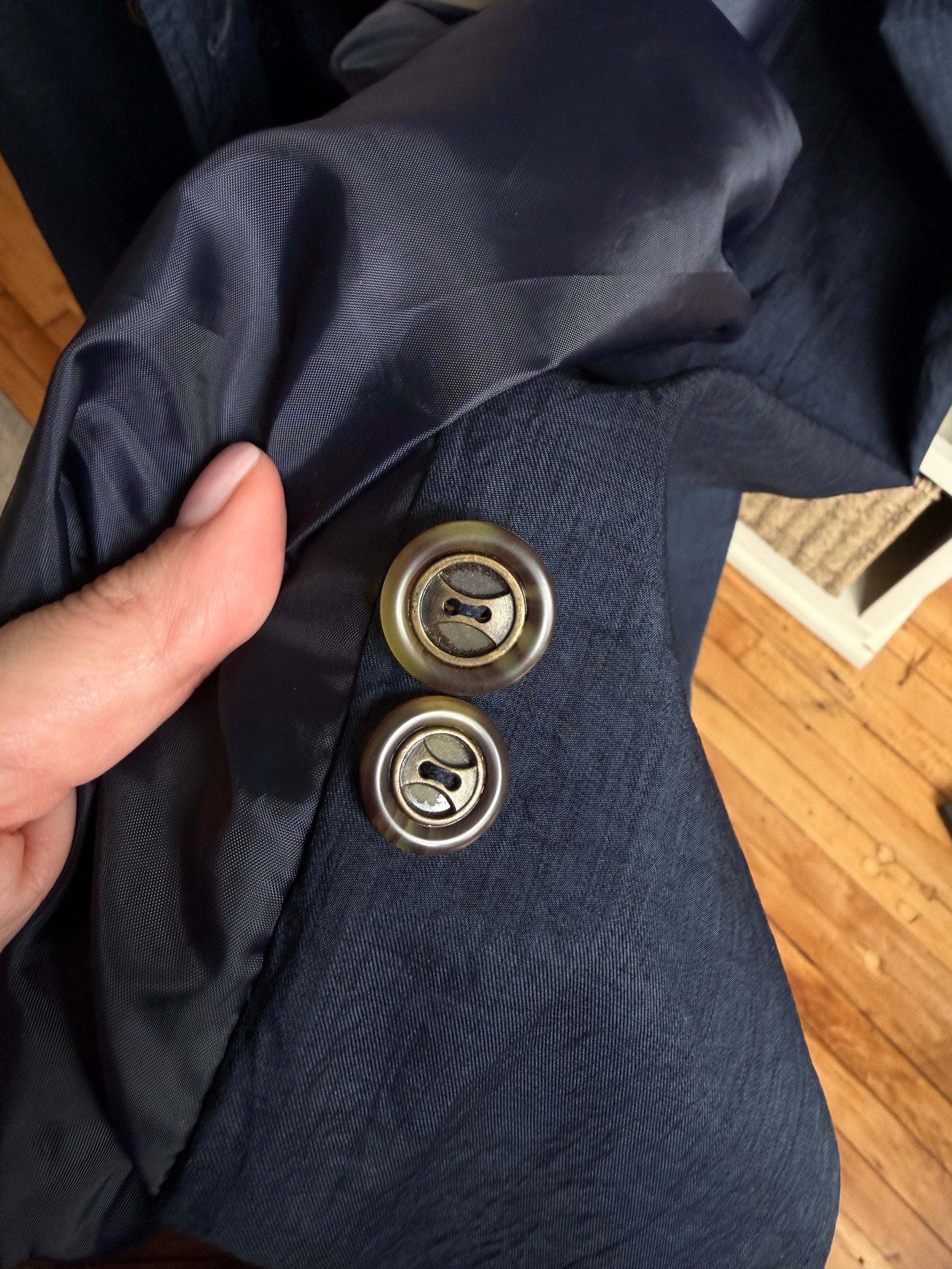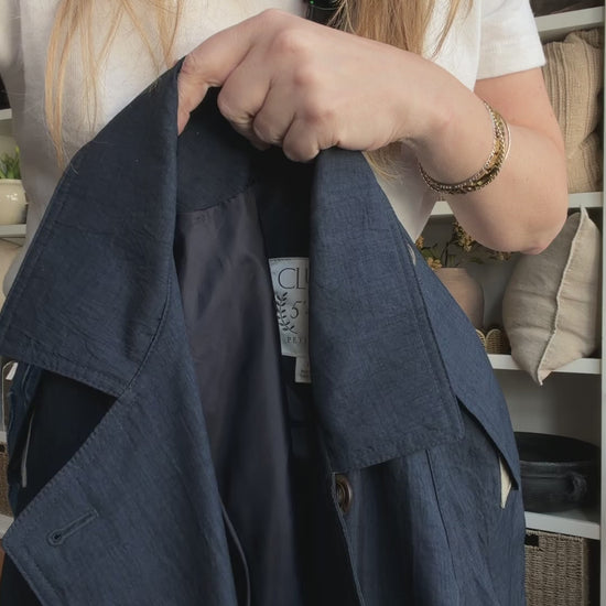 90s Club 5’4’ Petite navy light weight trench.
