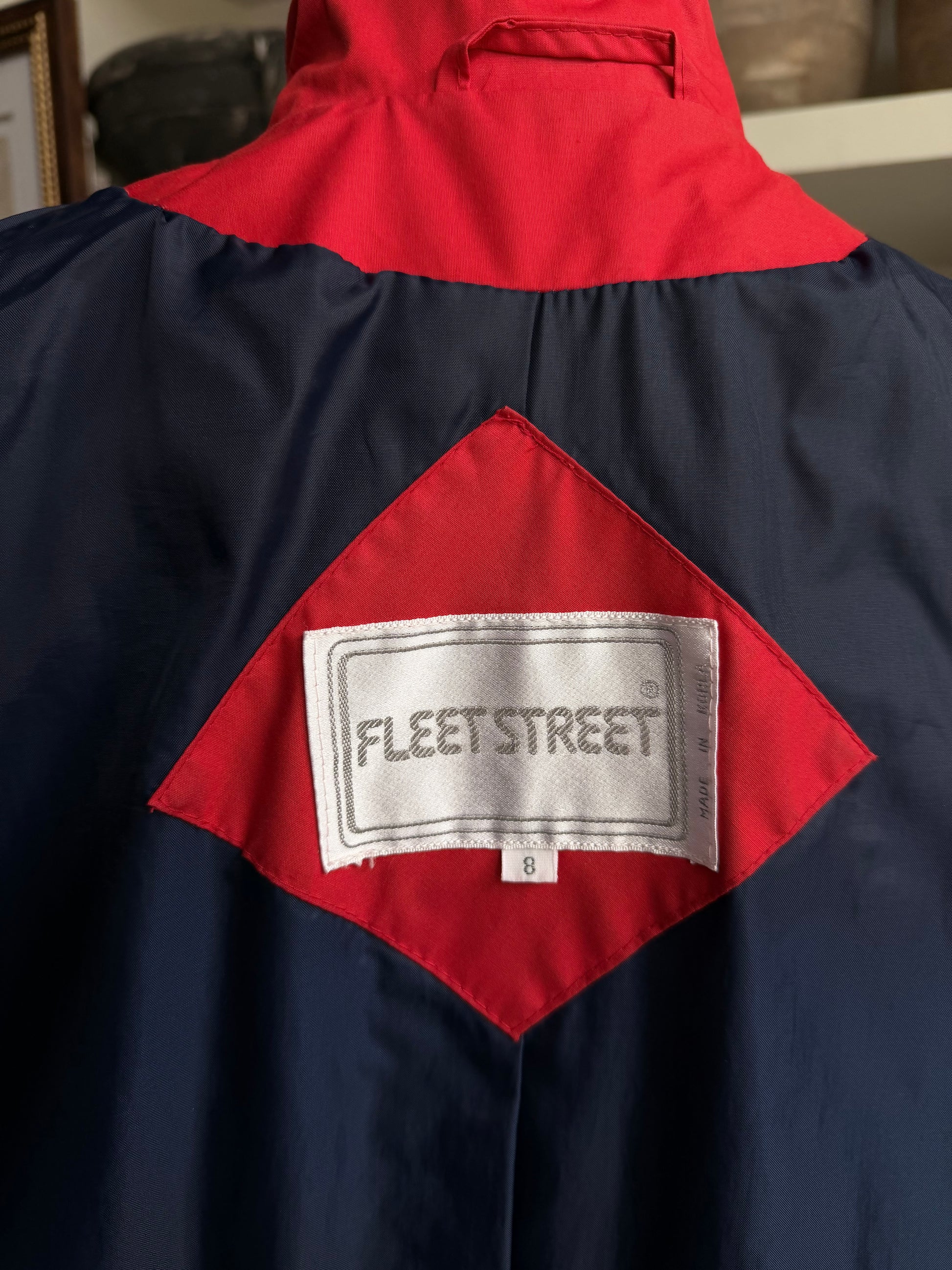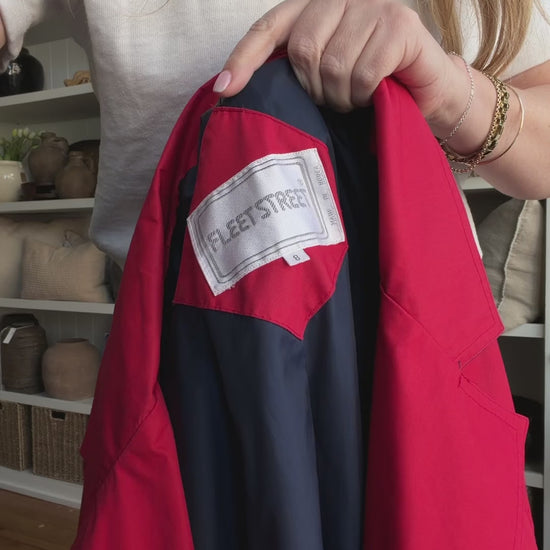 80s Fleet Street red trench with navy details. Made in Korea. Excellent condition