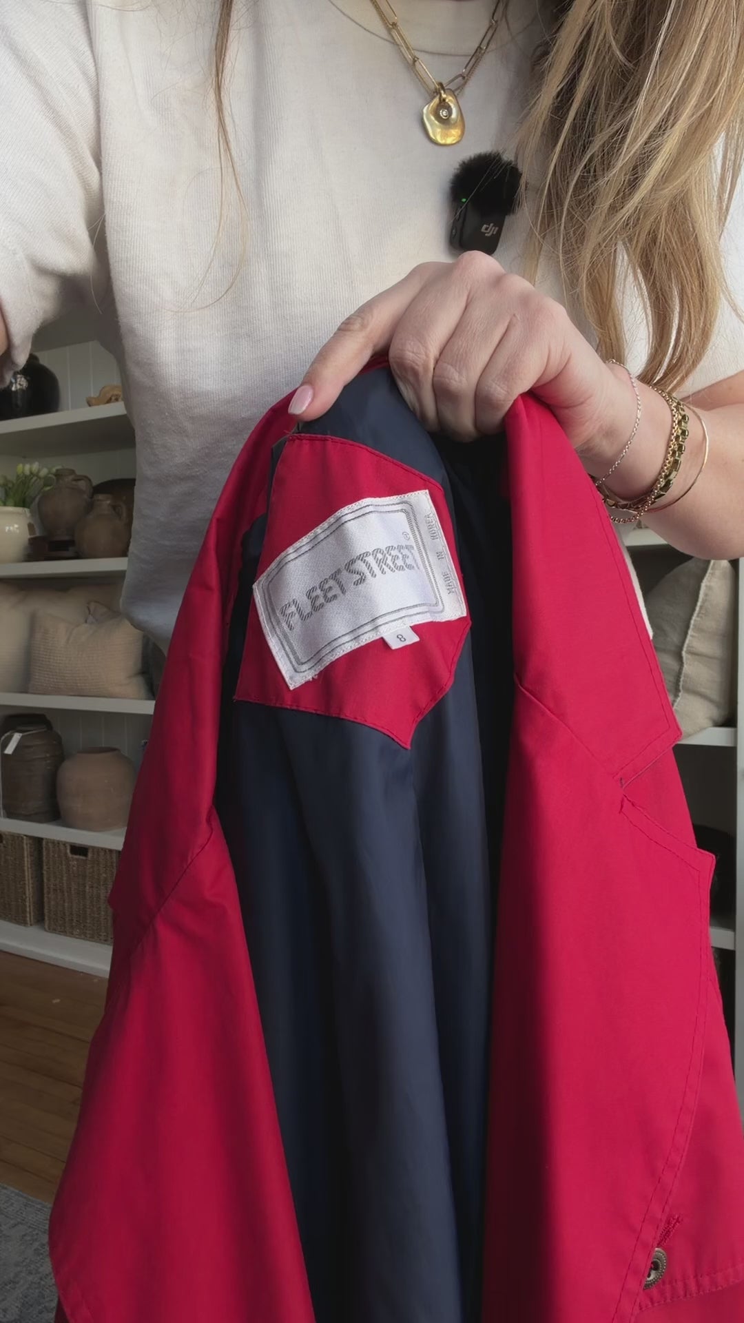 80s Fleet Street red trench with navy details. Made in Korea